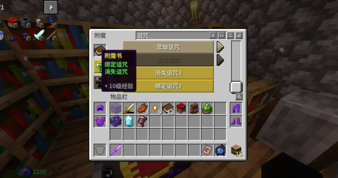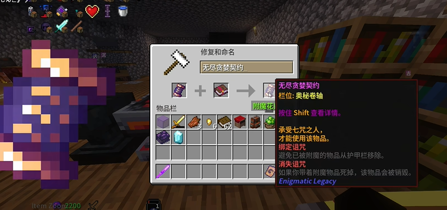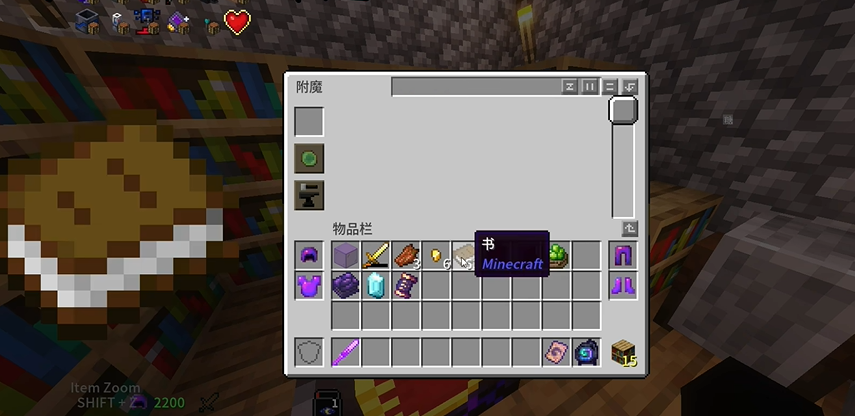 4、可以看到选中两个诅咒后,原本的【书】变成了【附魔书】,此时我们再把书拿下来
