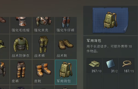 地球末日生存中除了我们人物出生会自带的10个格子外,玩家还可以通过获取背包来提升格子数量,从而让你可以携带更多物品。游戏中有不同规格的背包,并且获取方法也各不相同。下面将为大家介绍一下这些背包如何获得。
