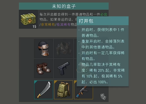 也可以通过每天看一个广告获得“未知的盒子”,有概率开出军用背包