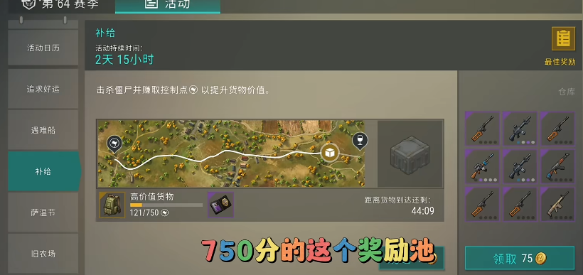 通过不定期举办的补给活动,其中750分的奖池也能获得军用背包