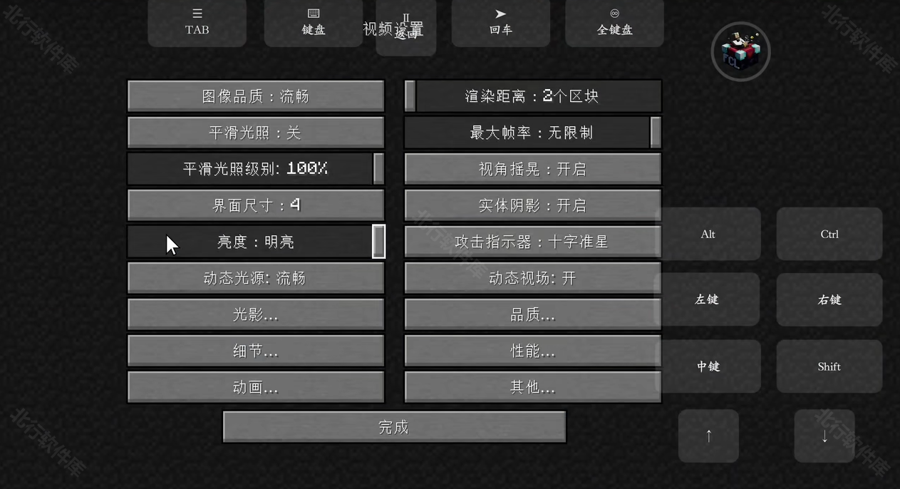 因为整合包由PC端移植过来,对手机配置要求较高,以上设置不关的话可能导致画面卡顿,甚至无法进入游戏