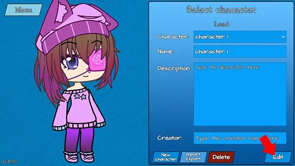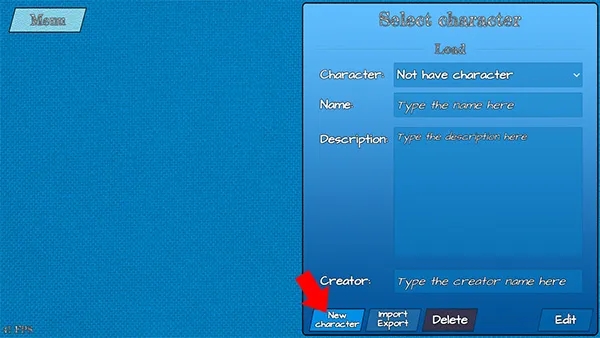 2、继续点击下方的New character来创建我们的新角色(也可以使用Import/Export来导入/导出角色,可以导入你在加查俱乐部中捏的人物)