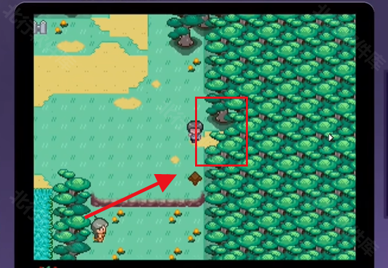 2、在被遮挡的区域上面有一条【隐藏的路】,手测大约从左往右按三下右键,再按一下上即可