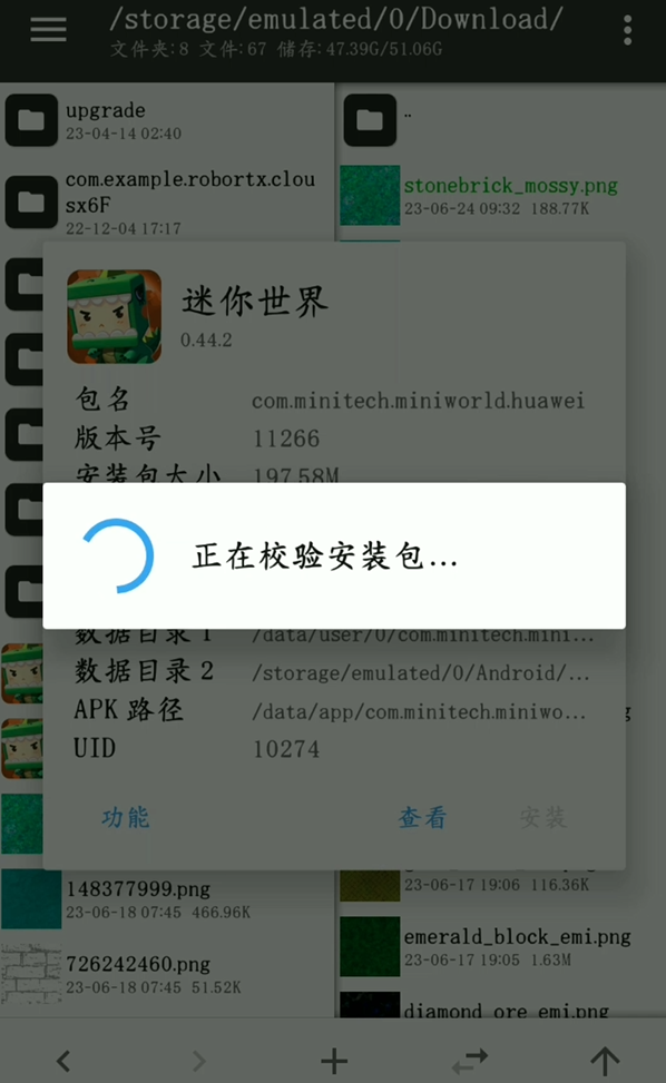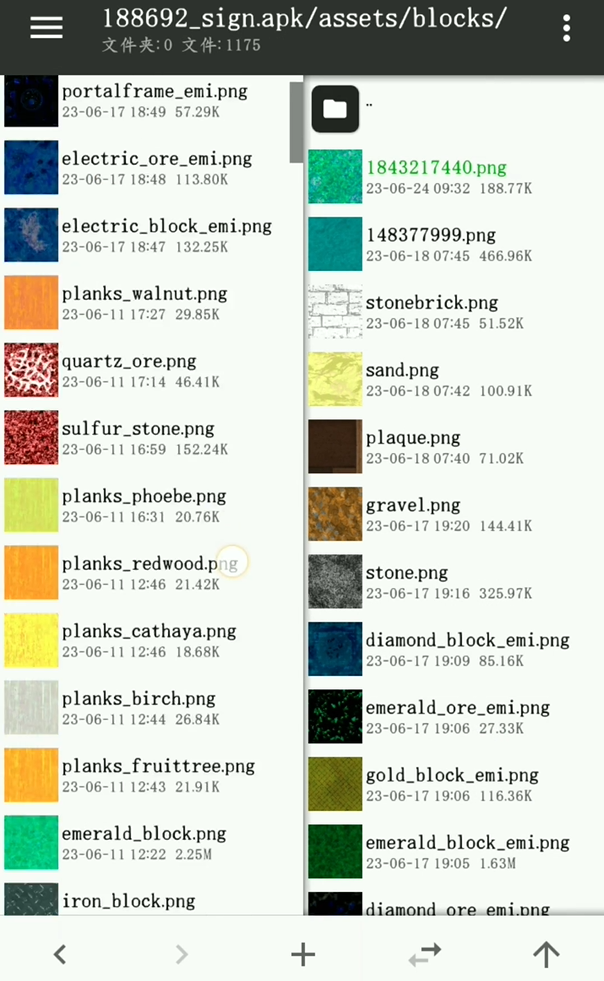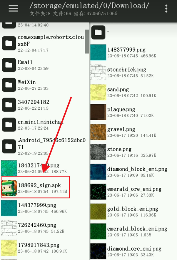4、用MT管理器查看迷你世界安装包的路径,依次进入assets/blocks/,在这里给刚画的材质找一个合适的方块