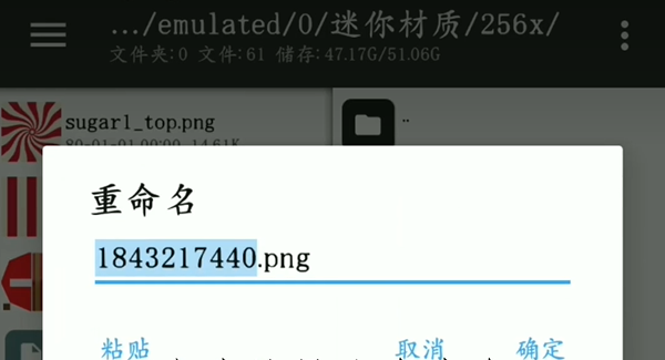 5、找到方块后,将其文件名复制下来,并且给你的材质文件重命名为刚刚复制的名字。然后用材质文件替换掉原来的方块文件