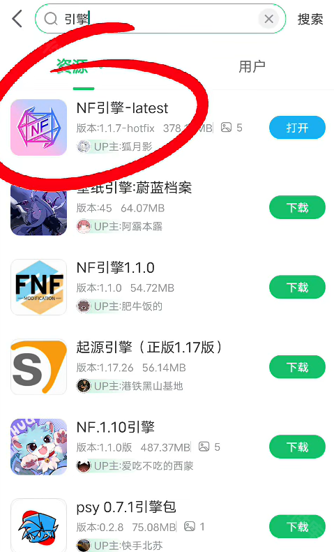2、可以在本站下载FNF引擎包,也可以去7723游戏盒的up资源中搜索“引擎”,在7723游戏盒中下载