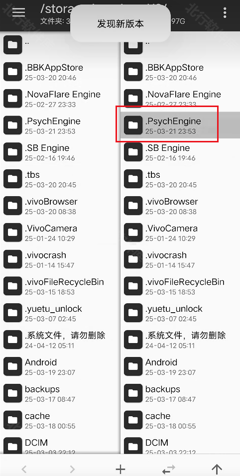 4、接下来需要用到MT管理器,创建一个文件夹,名字写“.PsychEngine”。注意前缀的“.”一定要带不然用不了。创建.PsychEngine文件夹只能是在你用的是PE引擎才创建,如果不是PE引擎文件夹名就要换成对应引擎的