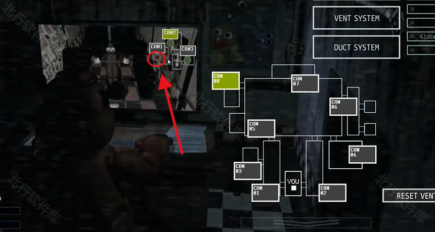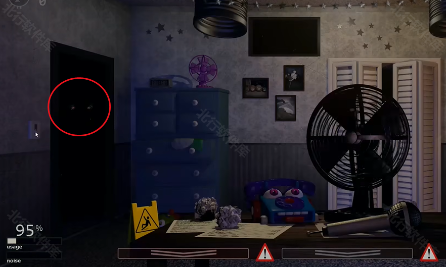 看到freddy走到门边后,立刻关闭监控,把左边的门关上即可