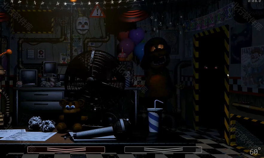 从监控里能看到freddy不断向左边的门靠近,最快的时候大概30秒左右就到门边,通常情况下是40秒左右到门边