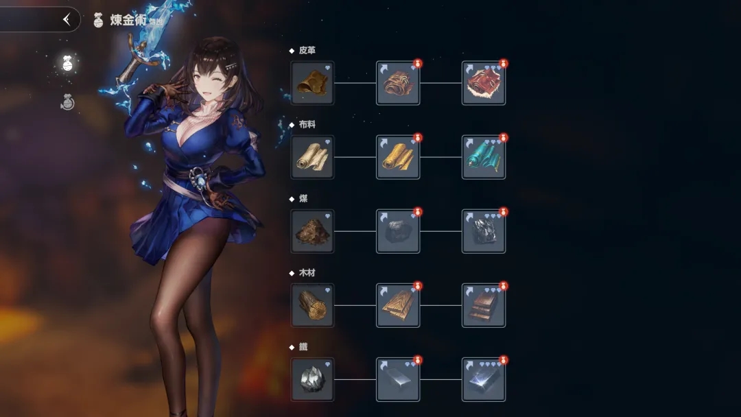 用炼金术把低等级材料提炼成高等级来合成制作UR装备所需要的材料,也可以转换成其他材料。