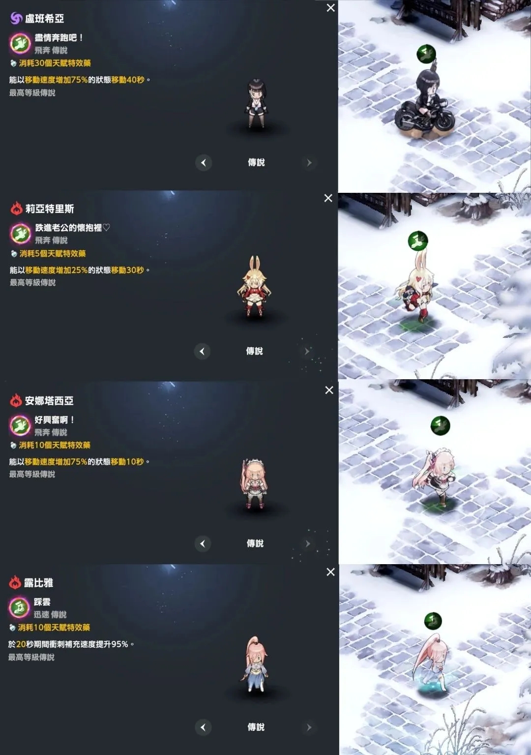 跑图专用,目前飞奔里最快最久的就是卢班,相对的天赋药花的也多。