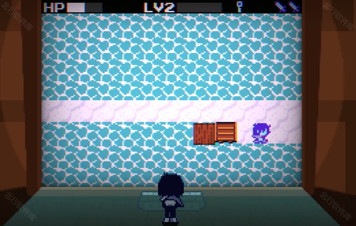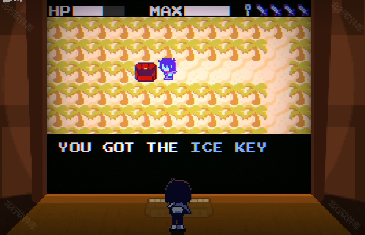 5、第一轮小游戏,剑升满级后向左上角一路挥砍,能看到一个红色的宝箱,打开宝箱获得ICE KEY