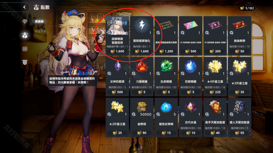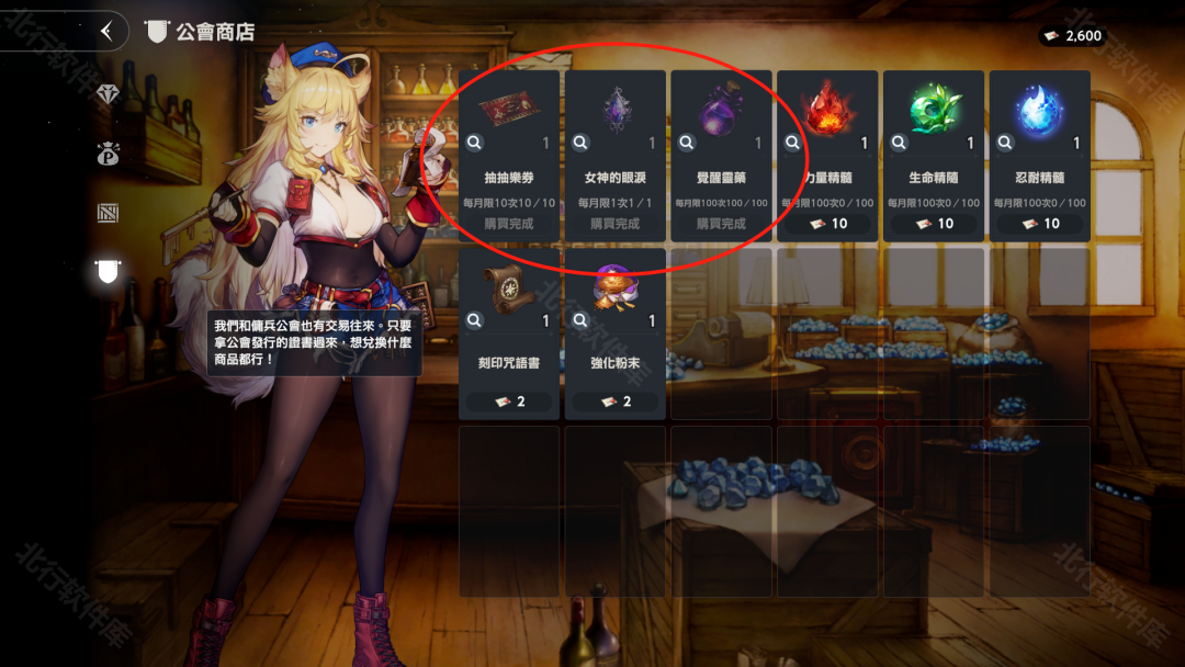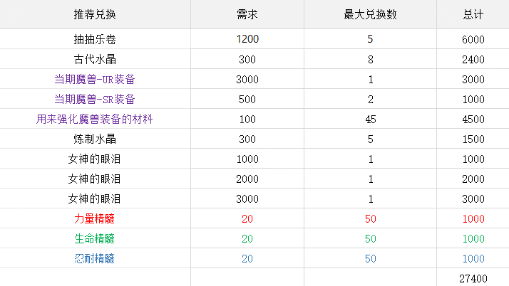 改版之后靠每日公会签到和公会战基本能搬空商店,优先兑换抽抽乐卷、女神的眼泪、觉醒灵药,剩下能买则买,按需自行选择。