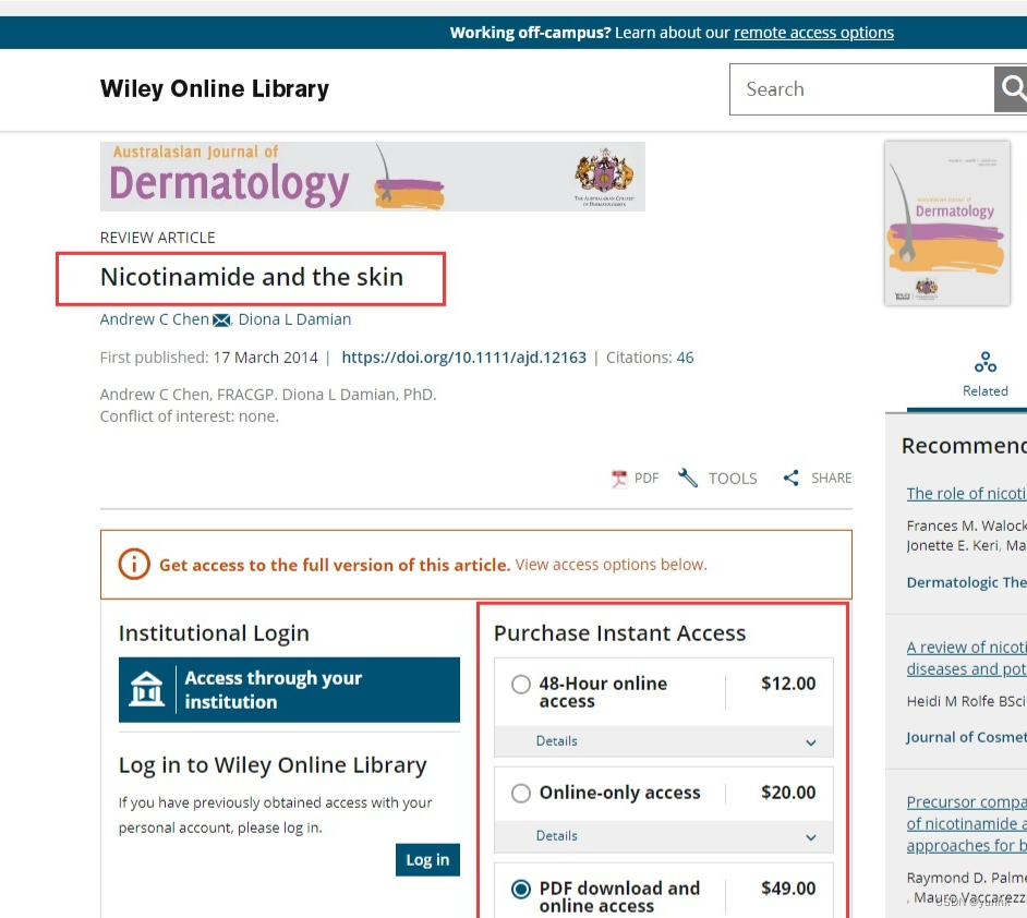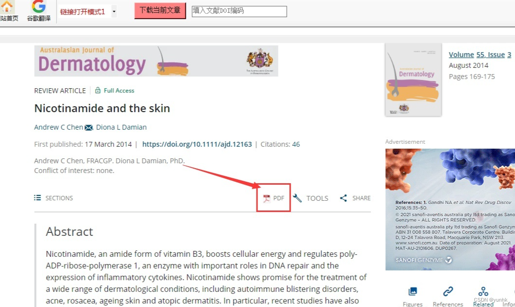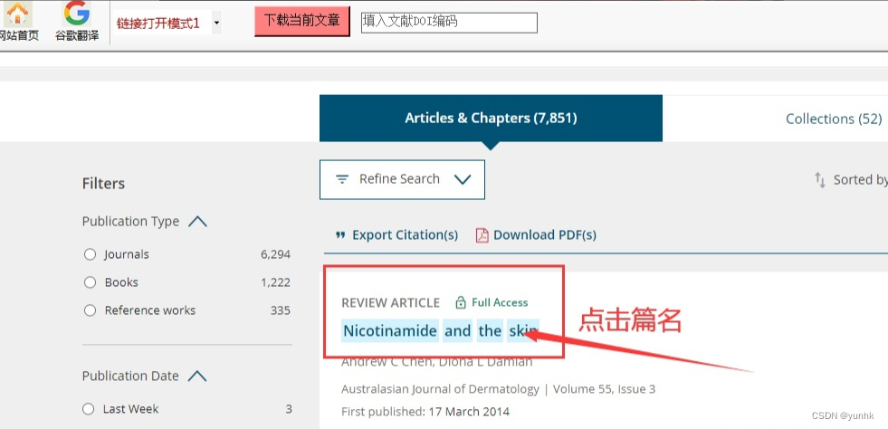2. 输入外文文献篇名"Safety of high-dose nicotinamide: a review"进行检索: