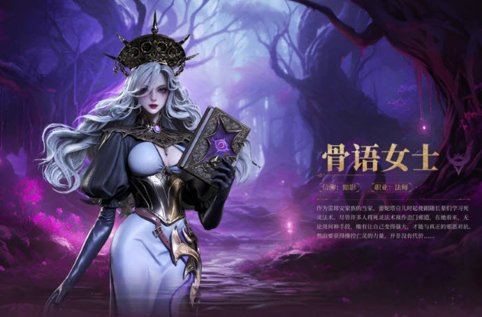 骨语女士(雷妮塔):法术输出天花板,召唤石碑持续伤害,敌人死亡后叠加伤害buff,兼具低血量大招回血的生存机制,适配所有 PVE 场景。