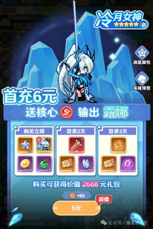 特别推荐大家用首充直接拿T0英雄露娜。首充就送还直升8星,保证前期永眠有一个高星的c位去推图,打副本,前中期过度特别丝滑。稳稳的很安心。同时赠送的两件红装和金色符文还能大幅提升战力,新手玩家追进度必备。