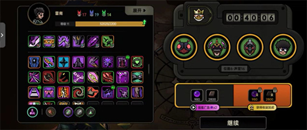然后徽章选择溢出血量恢复加钱,和进去商店关卡加40%钱的,选关有商店进商店,只买刚需和有用的,不刷新,药瓶也可以买,不满血喝了钱更多,主选绿牙加恢复和生命上限的这俩。前面的钱省着点用,最后一关前的boss一次性买完东西。