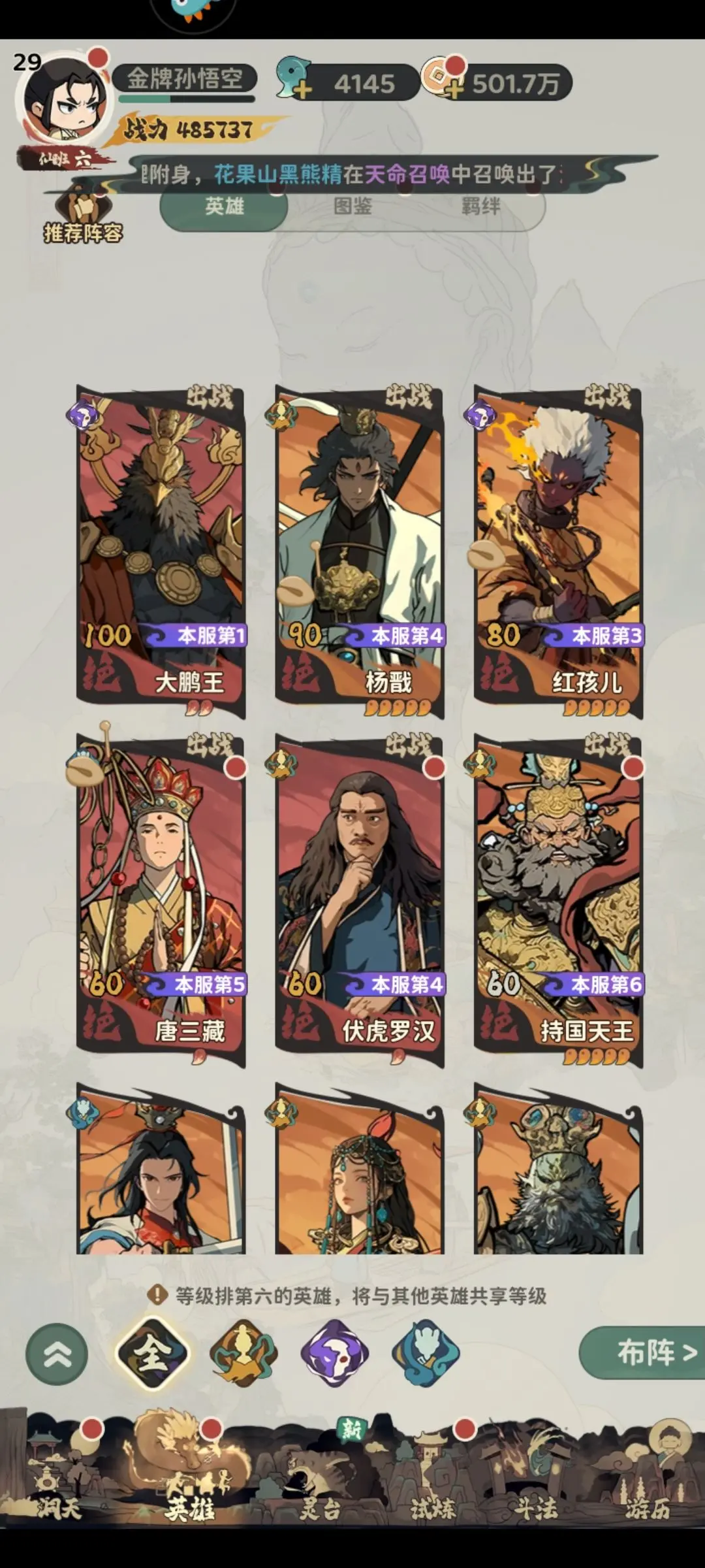 1、前排t0:李靖,牛魔王,机制和数值足够优秀,李靖是我最推荐练的。 (零氪玩家可以玩多闻天王,数值很优秀,但是他设定是远程,打起来往后跑)