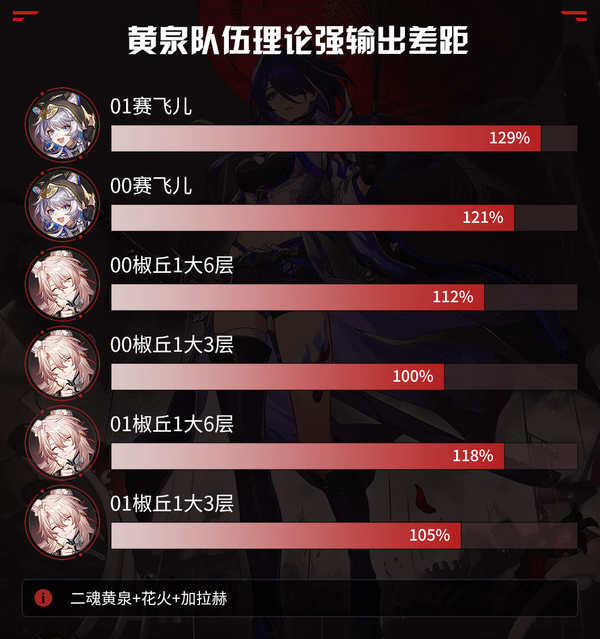 还有就是二魂黄泉能不能同时带赛飞儿和椒丘,不带同谐,目前来说,也意义不大,之前无论是花火,记忆主还是周日,都比带两个虚无好用点,赛飞儿和椒丘提供的易伤还会互相稀释,两个人还不能同时带决心,多少有点尬。