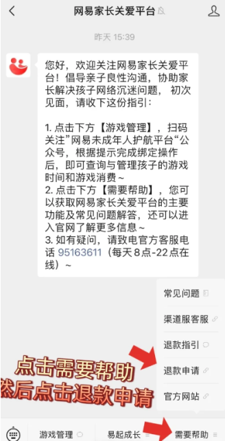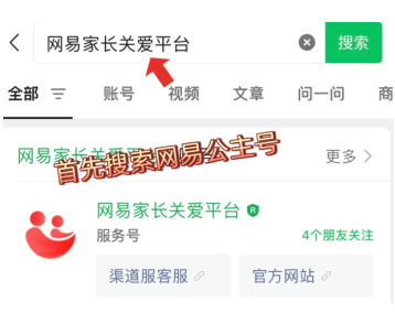 4. 按照客服提示,绿泡泡找到“网易家长关爱苹台” 。