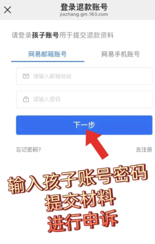5. 进入“网易家长关爱苹台”,根据里面的提示,一步步填写相关信息,像孩子的游戏帐号、充值金额、充值时间,还有刚才准备好的证件明和充值记录,都要准确上传。
