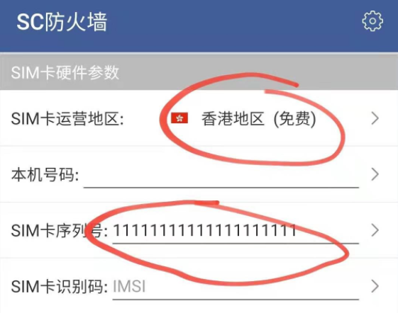 1、打开SC防火墙,我们对下列敏感数据随机做了修改,SIM卡运营地区(会被用来区分用户国家),SIM卡序列号、设备识别码(会被利用做定向广告推送,用户识别、设备拉黑等恶意行径)