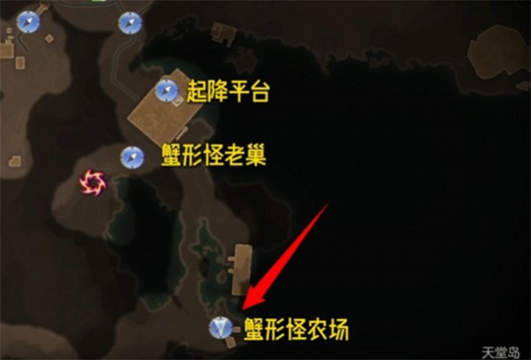 1、使用传送点直接前往“蟹形怪农村”区域。