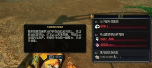3、在农场主附近可以看到一只受伤的螃蟹。使用医疗包为其治疗。