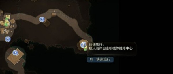 1、需要前往极乐海岸区域。找到标注为“自走机械体维修中心”的建筑。