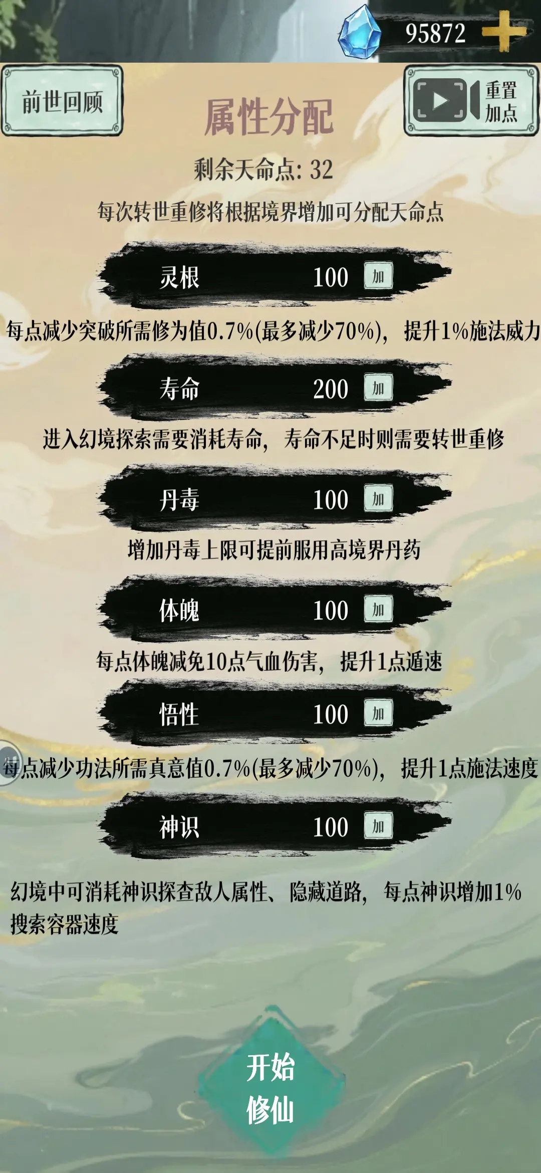 元婴期转世可得20个天命点,从练气1层到元婴期需8瓶天玄丹。