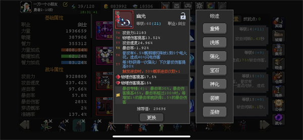 攻速提升明显,在保证100%暴击和连击后,尽量堆高攻速,项链和圣物可提升攻速。切记,先保证暴击和连击再追求其他属性。