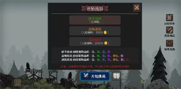 进入搜索可以选择不同的战局,难度越高的战局需要消耗的金币越多,但同时能获取的高品阶物品概率也越大