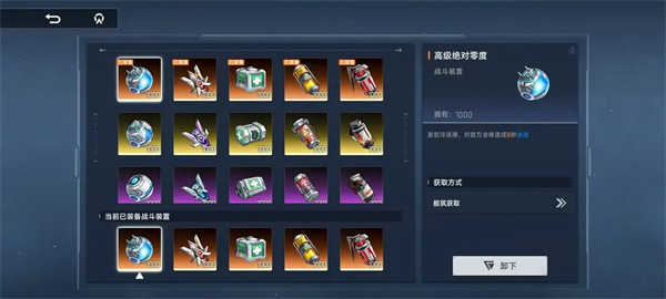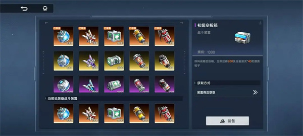 绝对零度:对全体敌人冷冻一定时间;初代机甲:投放机甲协助作战和御敌;生息磁场:使目标区域内友方目标持续回复生命值;源能聚力:对战场上的敌人进行群体攻击;源能手雷:对区域内的敌人造成高额伤害,并持续灼烧地面造成持续伤害;空投箱:按照波次投放一定数量得源质粒子;量子脉冲:使战场上隐身的敌人显形。