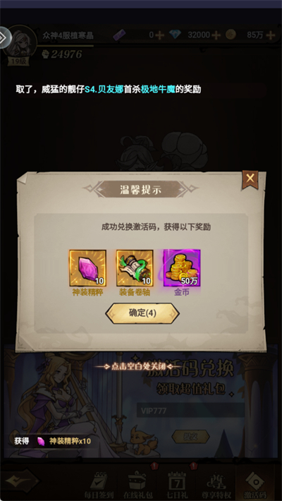 众神召唤作为一款放置挂机类的rpg冒险手游,在游戏中不需要过多的操作就可以体验到刺激的战斗过程,并且每个BOSS的奖励都标明,这一点非常良心。整款游戏没有过多的竞技性,就是不停的刷怪兽刷宝,非常适合闲暇时间玩,这里为大家奉上兑换码,助力大家开荒。