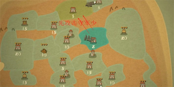 先占周围,优先级:①特殊地块>其它②守军少>守军多。