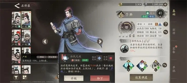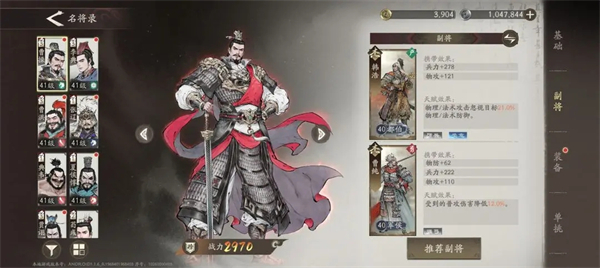 2. 李典:杰将,加血加减伤,被动减少冷却,群加血,副将搭配增加治疗效果和回复兵力。