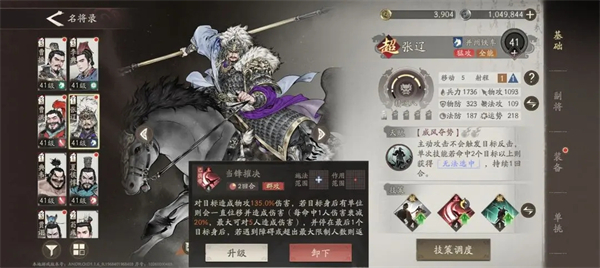 3. 张辽:核心技能不被反击,主动技能隐身buff,群攻穿线敌人,副将搭配无法反击增伤和克制增伤。