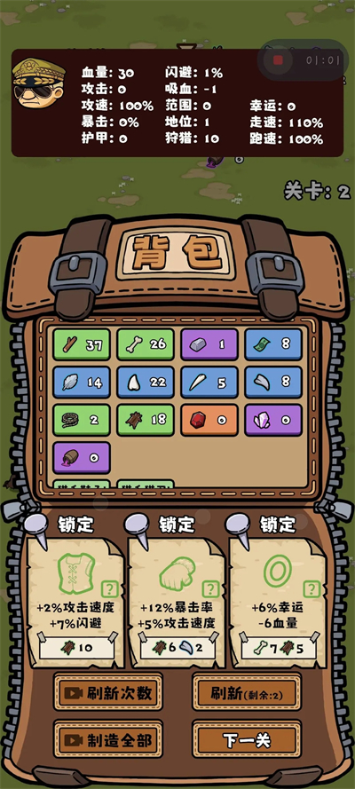 选择锤子(自带护盾,防止前期被秒),改装和天赋优先闪避(满级可达92%闪避率)。