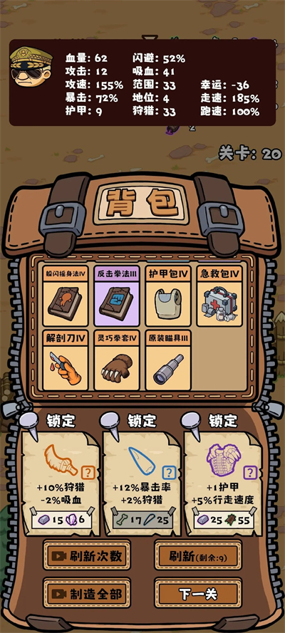 十七、十八、十九、二十关打法(十九层进营地买不动+36闪避,装备52闪避,总闪避达88%,开启站桩吸血)。