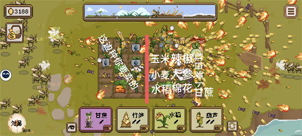 有2级以上红白萝卜后,开始种小麦和玉米,升级到3级后,就能通过种植并出售种子来获取资源和提升作物攻速攻击。