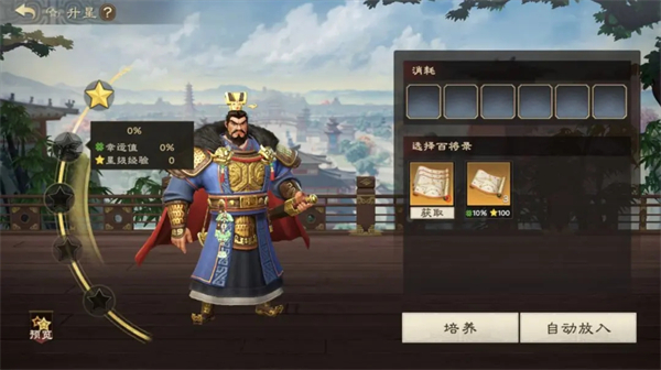 六、武将10级升星技巧:先使用2-3张名将录,再使用6张名将录暴击,可升至3-4星,解锁4个技能提升战力。