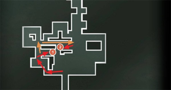 按照黄色箭头路线移动,抵达标识【2】位置。