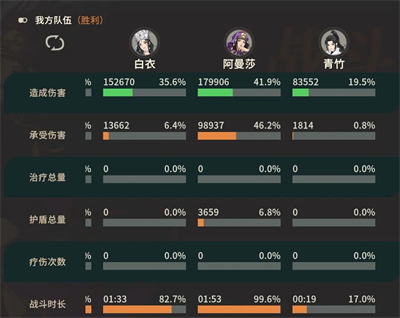 阵容配置:老叶、香君、白衣、阿曼莎和主角。