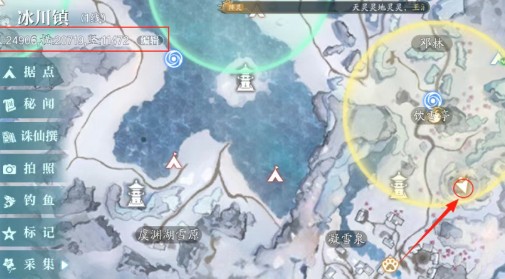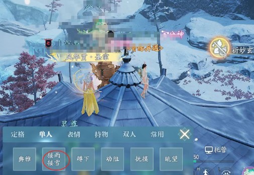 2.到冰川镇这里的灯塔上(24906,20719,11454),在夜晚使用动作“接雨接雪”。