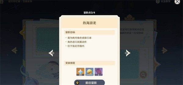 原神的回忆留影之旅正式开启啦,这次活动大家都需要去指定的位置完成拍摄。第一天的两个拍照点是纸上剧场、竞技之火;第二天需要完成热海游龙和湖中垂柳两个留影点,开始前请还要提前完成前置任务还有派蒙的留影机道具;第三天则是要前往映阳之花和水天丛林这两个地方完成拍照任务。接下来小编就为大家带来这三天的拍照位置攻略。