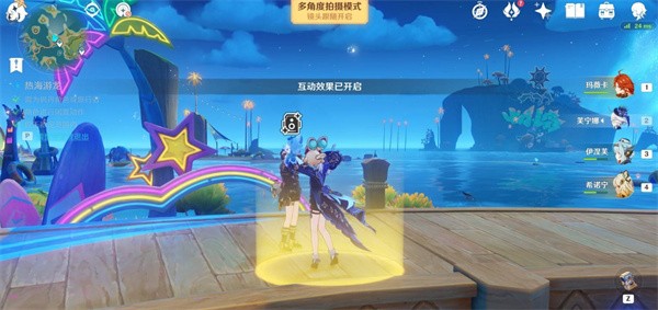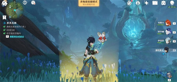 2、前往留影位置后,切换一名水元素角色。