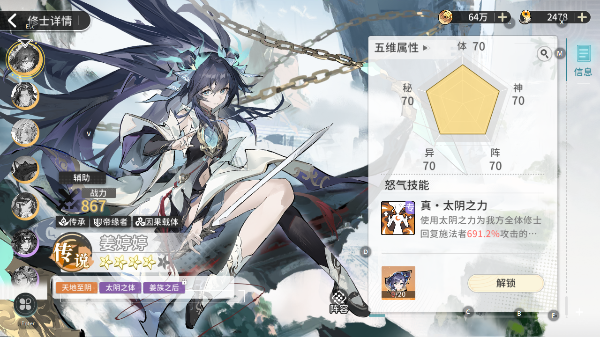 姜婷婷:使用太阴之力为我方全体修士回复施法者691.2%6攻击的气血,若回复血量超过气血上限,则多余的血量转换为护质,护盾持续2回合。