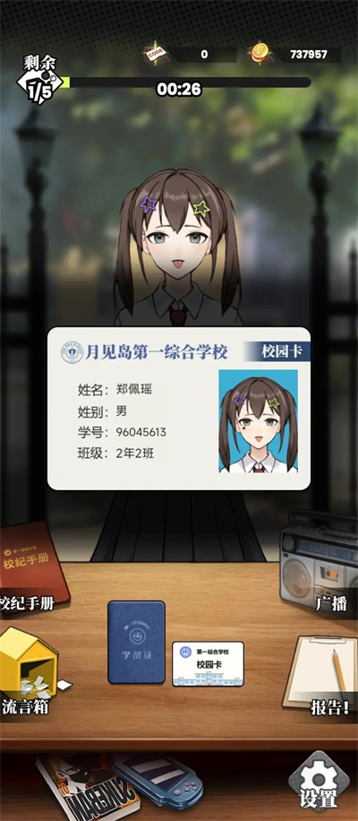 我的同学是伪人是一款策略卡牌战斗与2d迷宫探索的解谜游戏。游戏中的卡牌系统丰富多样,每张卡牌都有其独特的能力和效果,你需要根据不同的战斗情况灵活运用。同时,迷宫探索也充满了挑战和惊喜,每一个角落都可能隐藏着宝贵的资源和线索。而在白天和黑夜中游戏将分为两种不同的玩法,晚上为卡牌对战,而白天你需要对入校的学生进行例行检查,本篇将为大家带来白天例行检查的新手攻略。