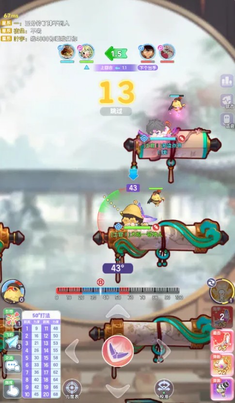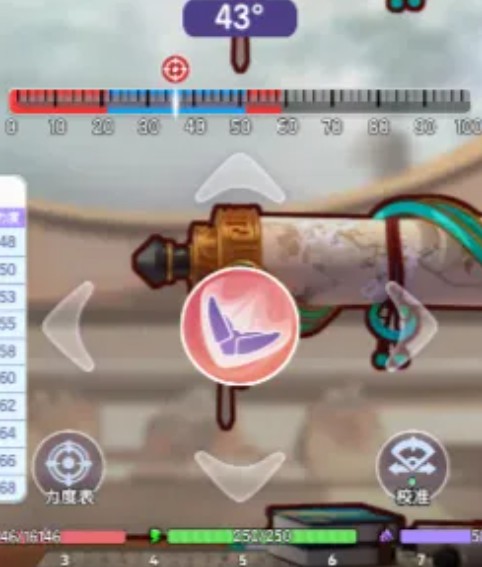 中央:角度刻度盘+力度蓄力条