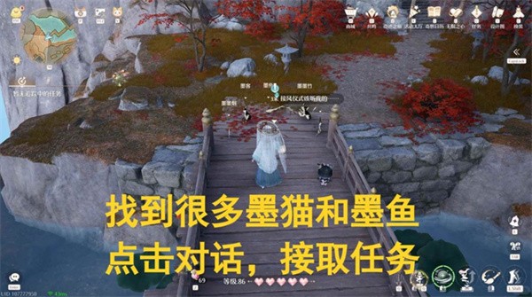 在附近找到墨猫、墨鱼,与它们对话领取任务。